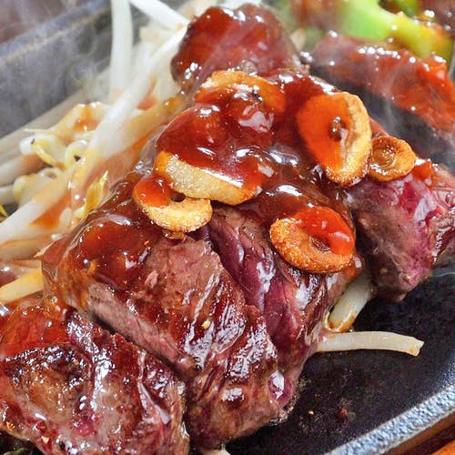 お肉の旨味溢れるステーキやお好み焼きなど自慢の鉄板焼き料理をご用意。